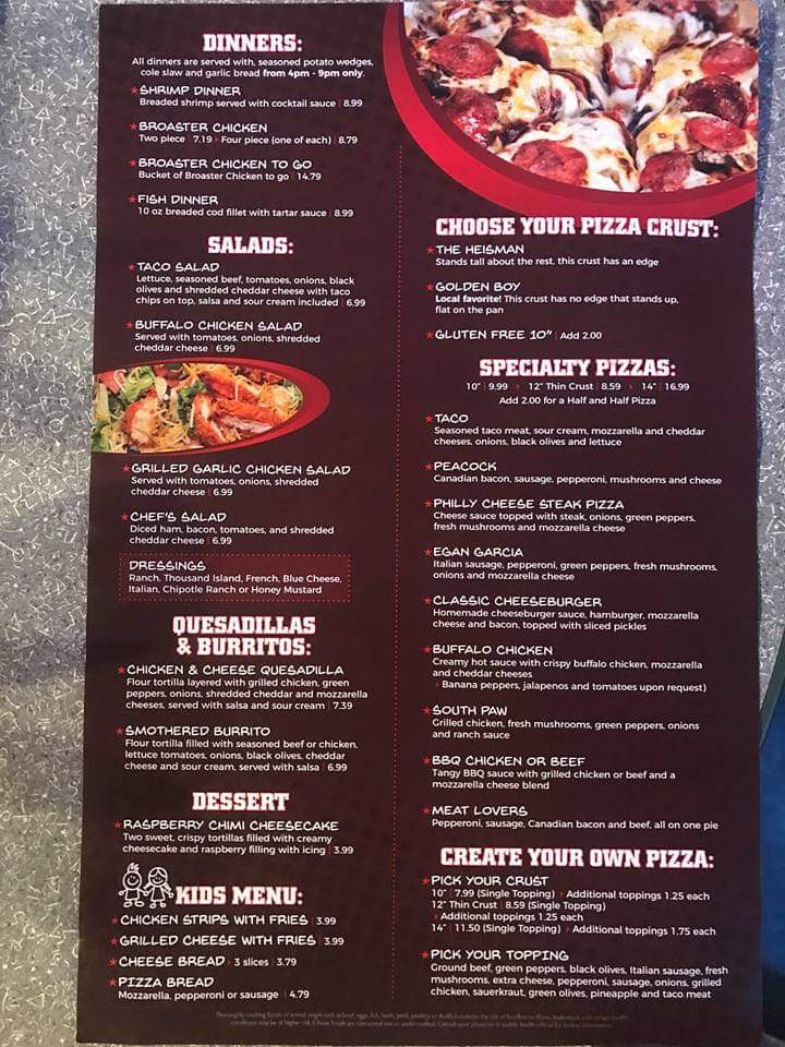 “ Friday night. First time in the town. Wait staff was great! Food was amazing. Bread portabello mushrooms for an appetizer, perfect breading. Had an Egan Garcia pizza with the Heisman crust. Absolutely loved it! Will definitely return if back in the area. ”